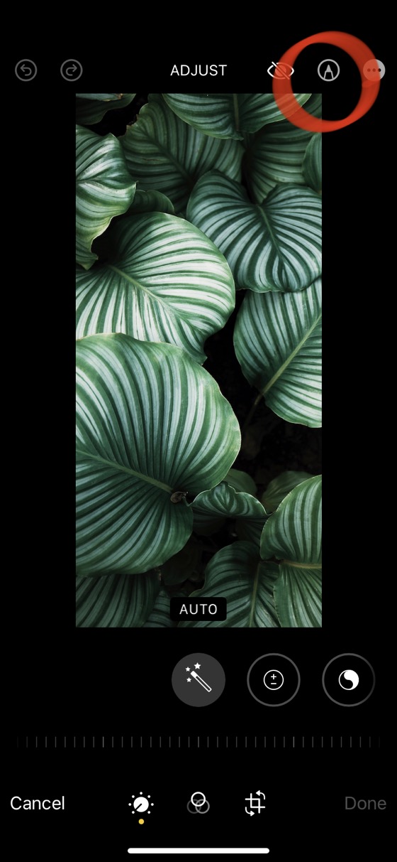 • Tap on the Markup icon (represented as the tip of a marker pen) in the upper right corner of the screen.