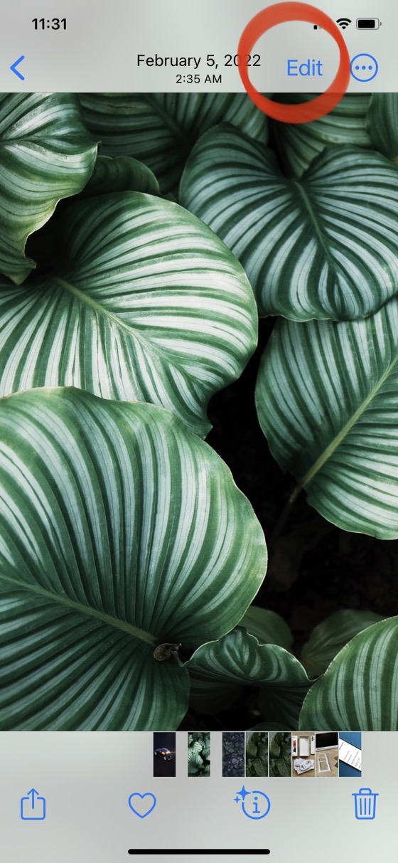 • Open the Photos app and tap on the photo you want to add text to.